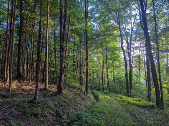 I knew that there wouldn’t be a sunrise this morning – it wasn’t in the forecast. But there would be good morning light, so I awoke at 0400 to get to Highland Forest by 0445, approx 35 minutes before sunrise. I figured that would give me adequate time to hike a couple of miles to the east rim of the park, where the best light should be.