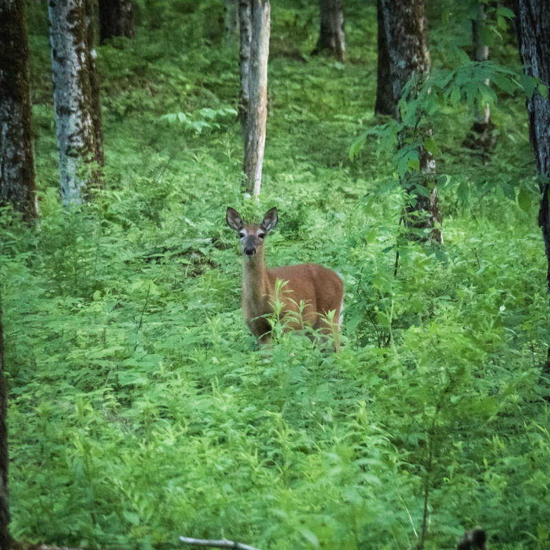 A few deer found their way in front of my path this morning as well – the light was so low, though … I had to capture everything with a high ISO. It did give me a chance to compare JPEG vs RAW in low light, though. To be honest, for memories and images of animals in low light that I would never print larger than 4×6, JPEG performed really well. I used the digital teleconverter and allowed the camera to reduce the noise, and I am struggling to render the same detail from the cropped RAW file – it can be done, but it certainly isn’t worth the effort. Again, for a 4×6 print, or a pic to be viewed on a small screen, the images are very adequate and useable.