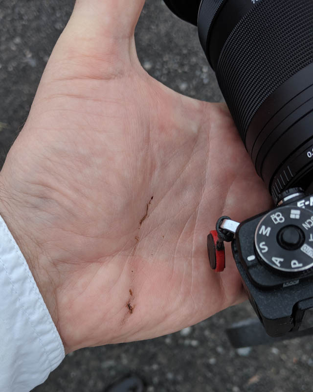 Then, not yet 50 yards into the trail, I felt something on my palm. The palm of the same hand that I was carrying my camera in, in case I saw wildlife.