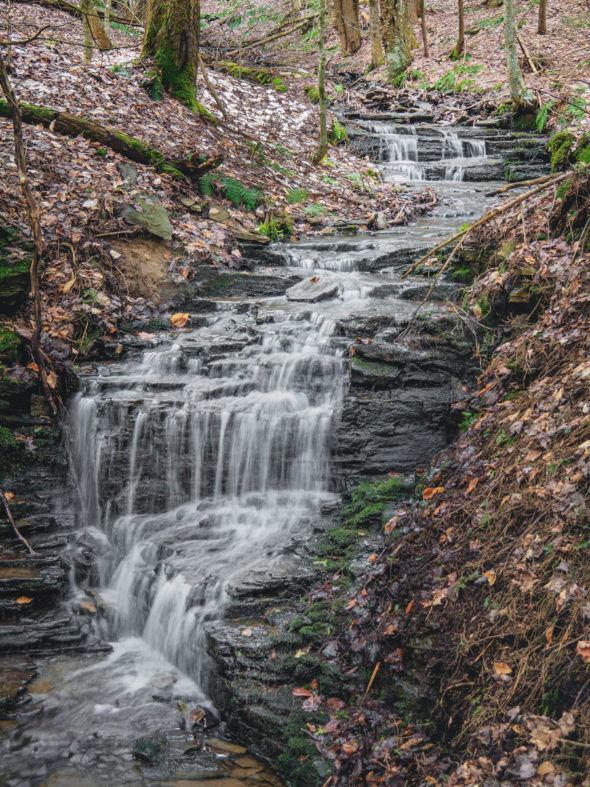 I say “the top of the falls” because it was a long way down, and without a rope the control my descent and offer assistance to go back, it wasn’t worth trying to get to the bottom, which is reportedly a series of cascading falls after this 40-footer. I setup the tripod and captured one photo of the falls…